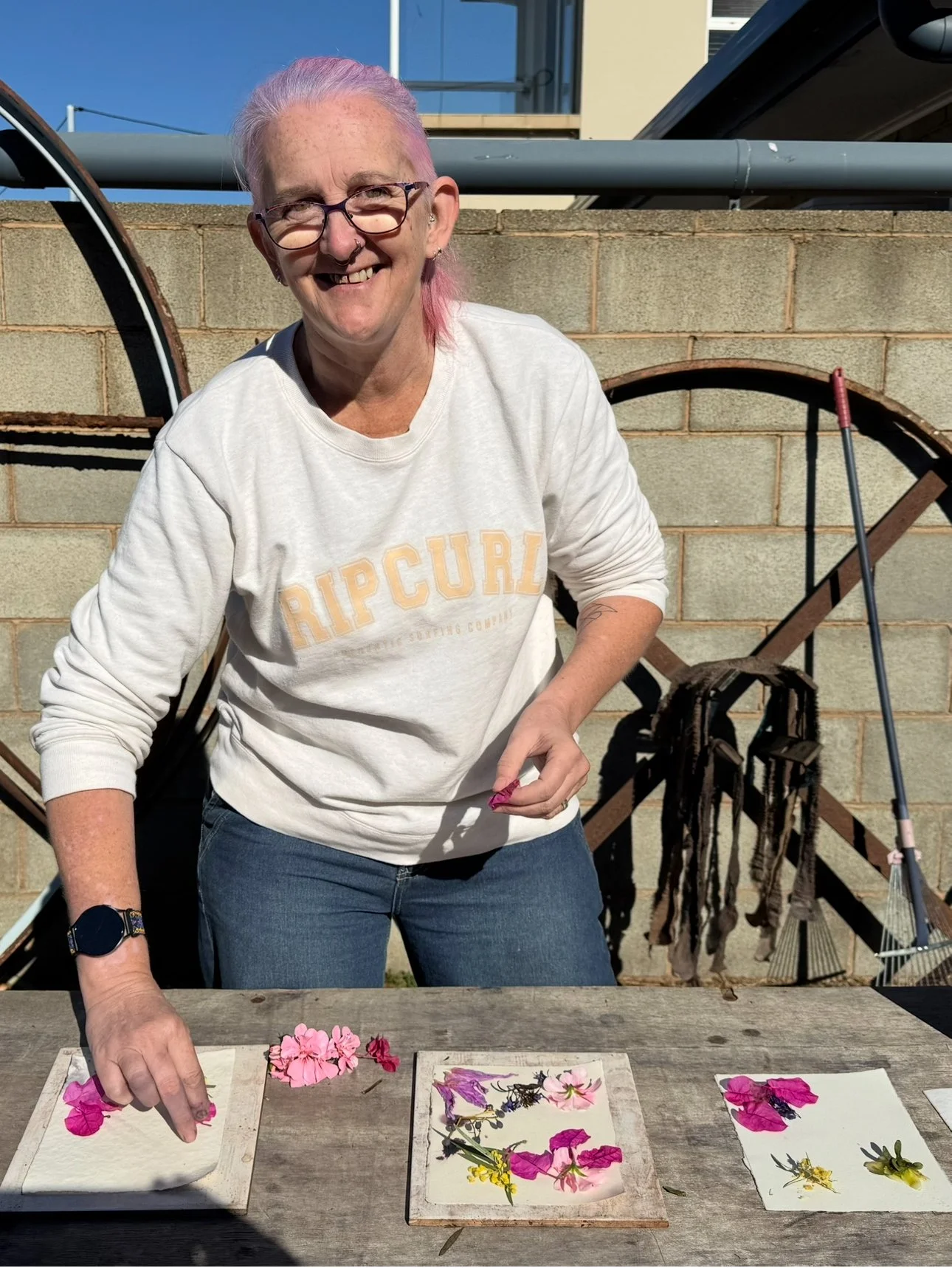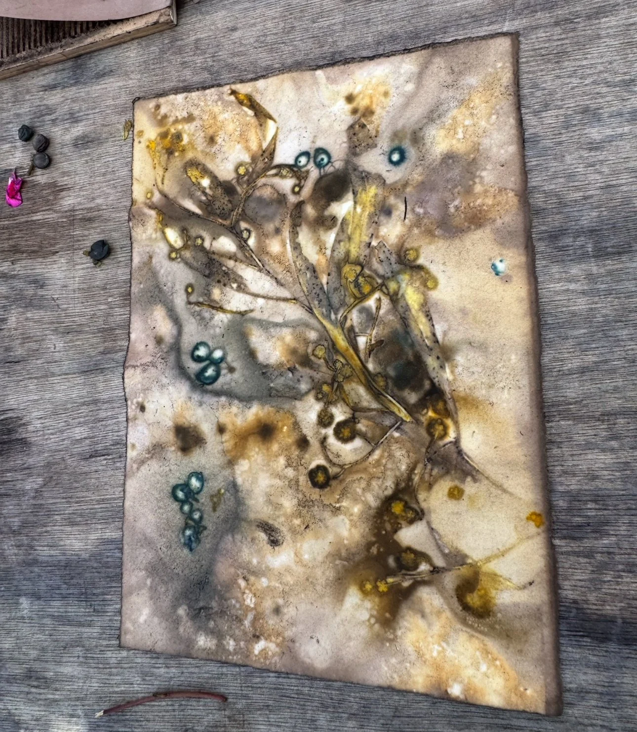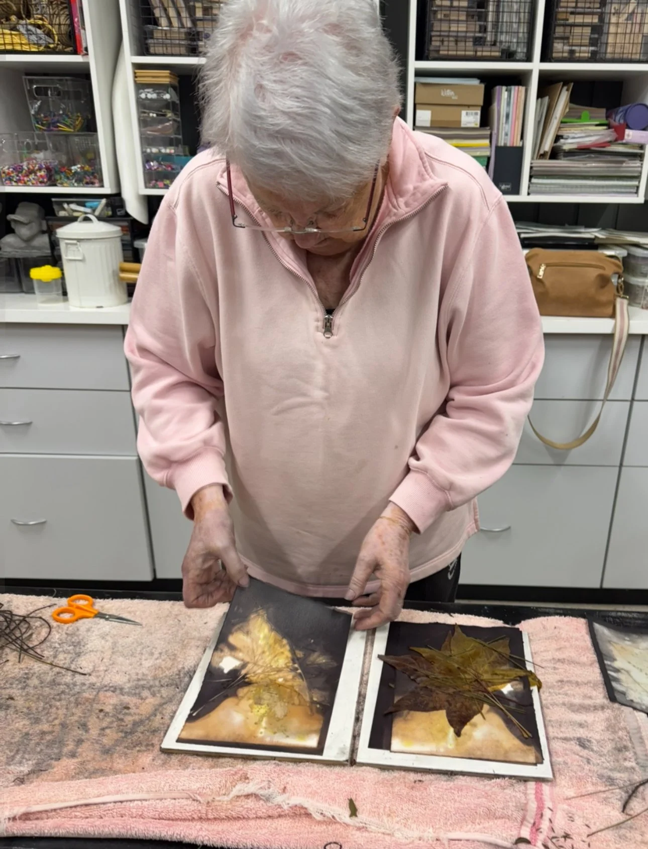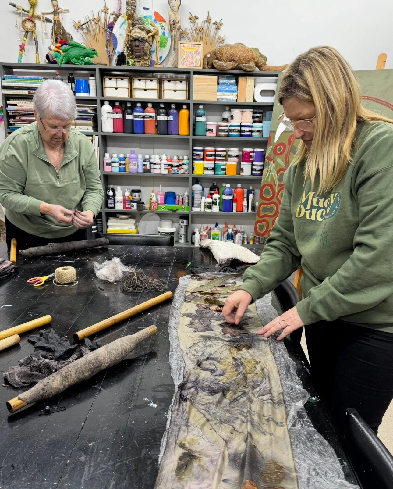 The second phase of the project continued independently at the Kerri Weymouth Art Gallery & Studio, where participants explored eco-dyeing, natural printing, and journal and scarf making. These workshops deepened creative expression through direct engagement with nature using leaves, bark, paper, and rusted metal to capture the organic beauty of the environment. This phase provided a calm, reflective space to experiment, connect with Country, and experience the therapeutic value of making.